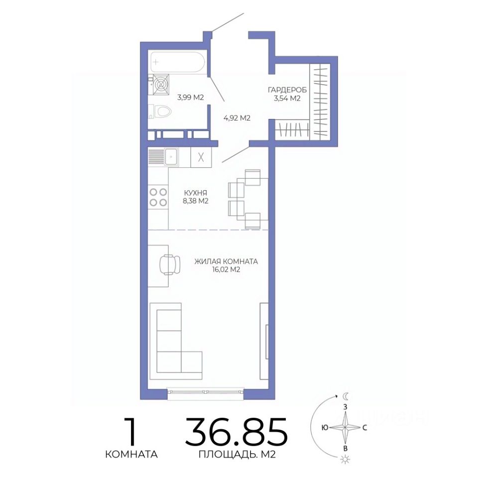 Продаётся 1-комнатная квартира в строящемся доме (дом 2), срок сдачи: II-кв. 2027, общей площадью 36.85 кв.м., на 6 этаже. Дизайнерская отделка.
