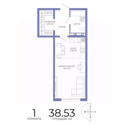 Продаётся 1-комнатная квартира в строящемся доме (дом 2), срок сдачи: II-кв. 2027, общей площадью 38.53 кв.м., на 8 этаже. Дизайнерская отделка.