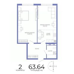 Продаётся 2-комнатная квартира в строящемся доме (дом 2), срок сдачи: II-кв. 2027, общей площадью 63.64 кв.м., на 9 этаже. Дизайнерская отделка.