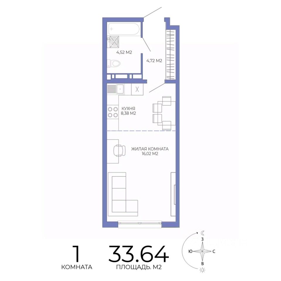 Продаётся 1-комнатная квартира в строящемся доме (дом 2), срок сдачи: II-кв. 2027, общей площадью 33.64 кв.м., на 12 этаже. Дизайнерская отделка.