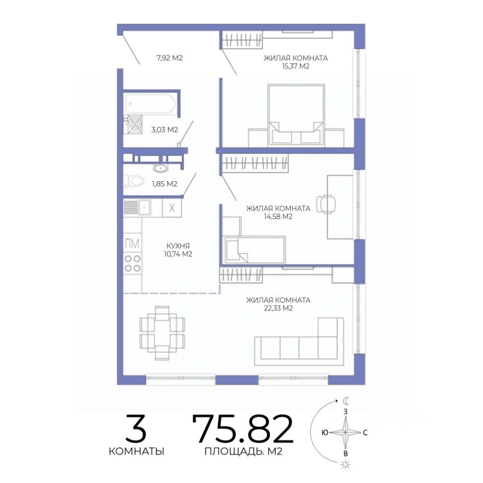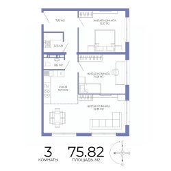 Продаётся 3-комнатная квартира в строящемся доме (дом 2), срок сдачи: II-кв. 2027, общей площадью 75.82 кв.м., на 13 этаже. Дизайнерская отделка.