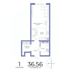 Продаётся 1-комнатная квартира в строящемся доме (дом 2), срок сдачи: II-кв. 2027, общей площадью 36.56 кв.м., на 3 этаже. Дизайнерская отделка.