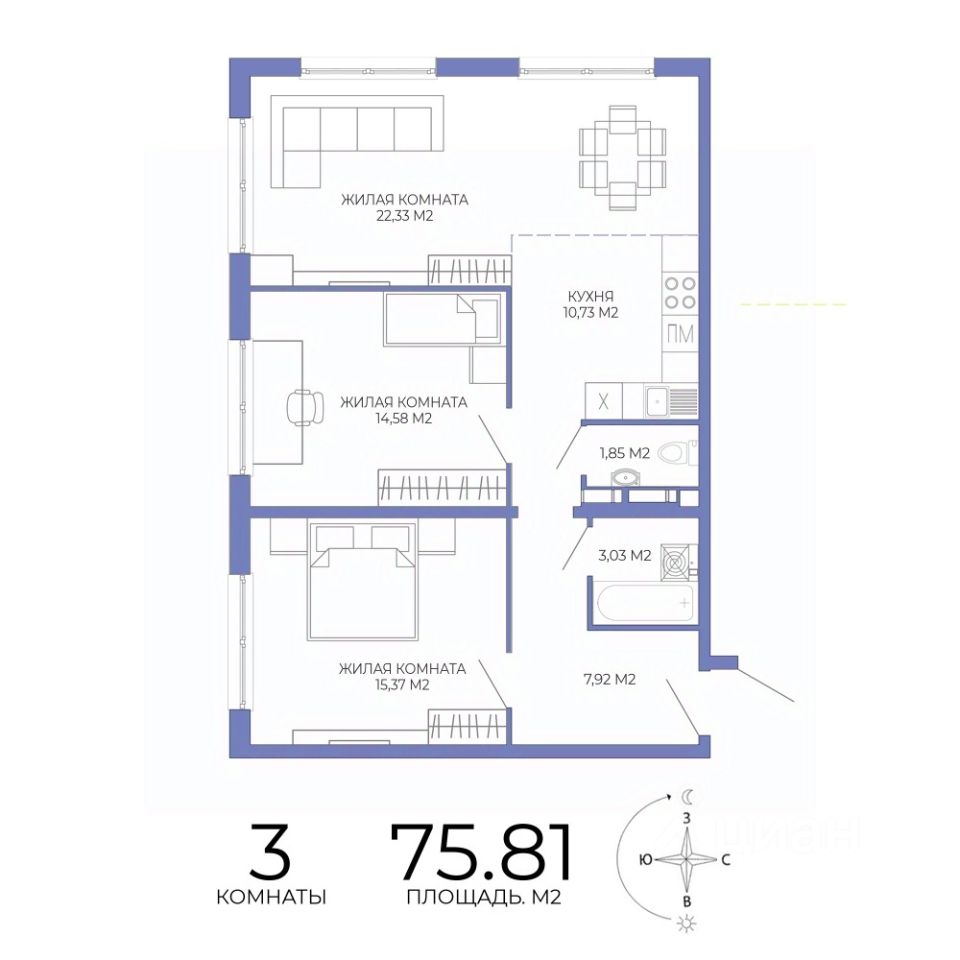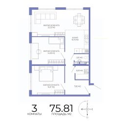Продаётся 3-комнатная квартира в строящемся доме (дом 2), срок сдачи: II-кв. 2027, общей площадью 75.81 кв.м., на 13 этаже. Дизайнерская отделка.