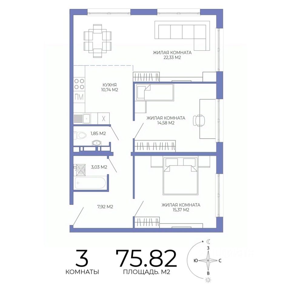 Общая площадь75,82 м²