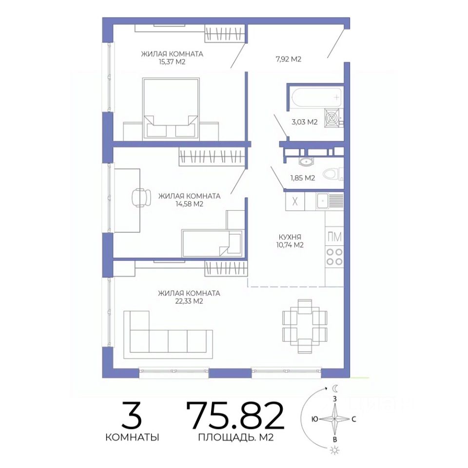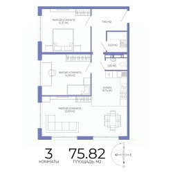 Продаётся 3-комнатная квартира в строящемся доме (дом 2), срок сдачи: II-кв. 2027, общей площадью 75.82 кв.м., на 14 этаже. Дизайнерская отделка.