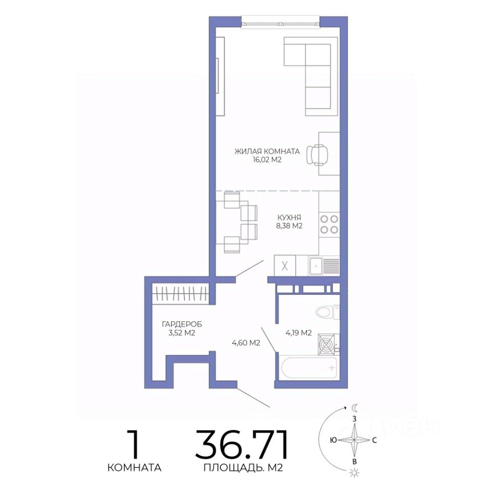 Продаётся 1-комнатная квартира в строящемся доме (дом 2), срок сдачи: II-кв. 2027, общей площадью 36.71 кв.м., на 16 этаже. Дизайнерская отделка.