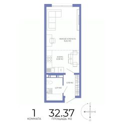 Продаётся 1-комнатная квартира в строящемся доме (дом 2), срок сдачи: II-кв. 2027, общей площадью 32.37 кв.м., на 16 этаже. Дизайнерская отделка.