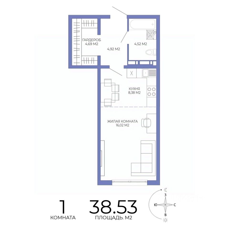 Продаётся 1-комнатная квартира в строящемся доме (дом 2), срок сдачи: II-кв. 2027, общей площадью 38.53 кв.м., на 16 этаже. Дизайнерская отделка.