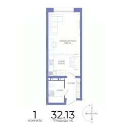 Продаётся 1-комнатная квартира в строящемся доме (дом 2), срок сдачи: II-кв. 2027, общей площадью 32.13 кв.м., на 2 этаже. Дизайнерская отделка.