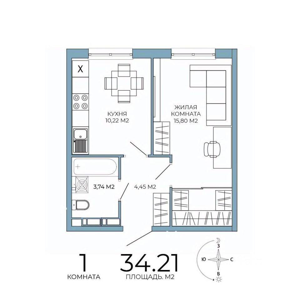 Продаётся 1-комнатная квартира в строящемся доме (дом 5), срок сдачи: III-кв. 2026, общей площадью 34.21 кв.м., на 15 этаже. Дизайнерская отделка.