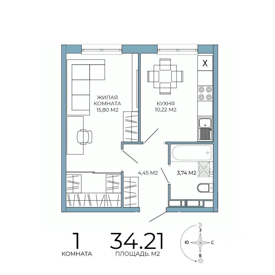 Продаётся 1-комнатная квартира в строящемся доме (дом 5), срок сдачи: III-кв. 2026, общей площадью 34.21 кв.м., на 15 этаже. Дизайнерская отделка.