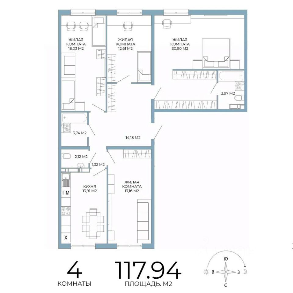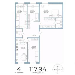 Продаётся 4-комнатная квартира в строящемся доме (дом 5), срок сдачи: III-кв. 2026, общей площадью 117.94 кв.м., на 14 этаже. Дизайнерская отделка.