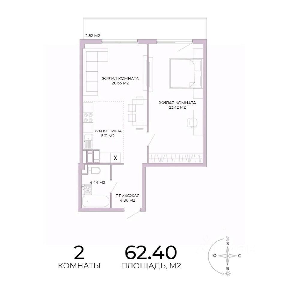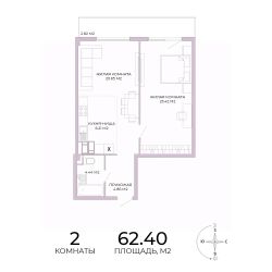 Продаётся 2-комнатная квартира в строящемся доме (дом 18), срок сдачи: IV-кв. 2025, общей площадью 62.4 кв.м., на 6 этаже. Дизайнерская отделка.