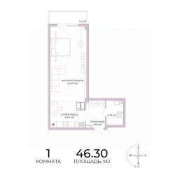 Продаётся 1-комнатная квартира в строящемся доме (дом 18), срок сдачи: IV-кв. 2025, общей площадью 46.3 кв.м., на 7 этаже. Дизайнерская отделка.