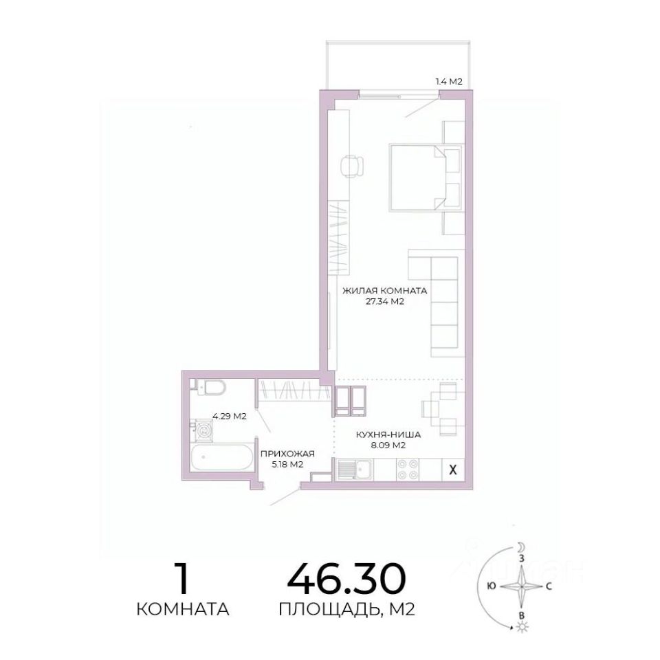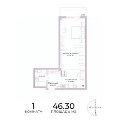 Продаётся 1-комнатная квартира в сданном доме (дом 18), срок сдачи: IV-кв. 2025, общей площадью 46.3 кв.м., на 7 этаже. Дизайнерская отделка.