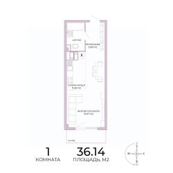 Продаётся 1-комнатная квартира в строящемся доме (дом 18), срок сдачи: IV-кв. 2025, общей площадью 36.14 кв.м., на 7 этаже. Дизайнерская отделка.