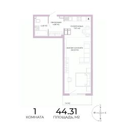 Продаётся 1-комнатная квартира в строящемся доме (дом 18), срок сдачи: IV-кв. 2025, общей площадью 44.31 кв.м., на 2 этаже. Дизайнерская отделка.