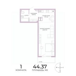 Продаётся 1-комнатная квартира в сданном доме (дом 18), срок сдачи: IV-кв. 2025, общей площадью 44.37 кв.м., на 8 этаже. Дизайнерская отделка.