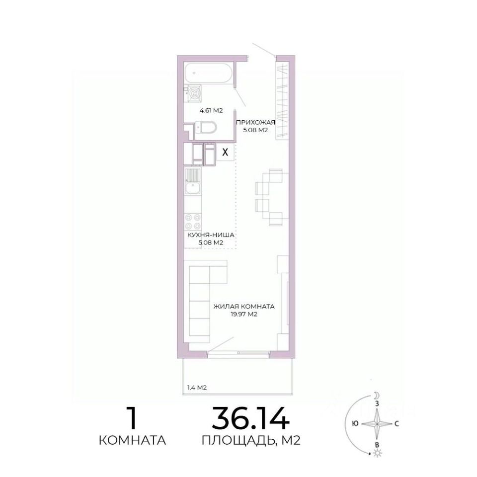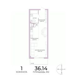 Продаётся 1-комнатная квартира в строящемся доме (дом 18), срок сдачи: IV-кв. 2025, общей площадью 36.14 кв.м., на 9 этаже. Дизайнерская отделка.