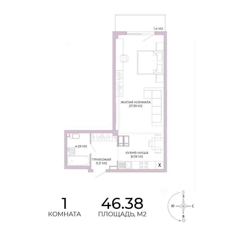 Продаётся 1-комнатная квартира в строящемся доме (дом 18), срок сдачи: IV-кв. 2025, общей площадью 46.38 кв.м., на 10 этаже. Дизайнерская отделка.