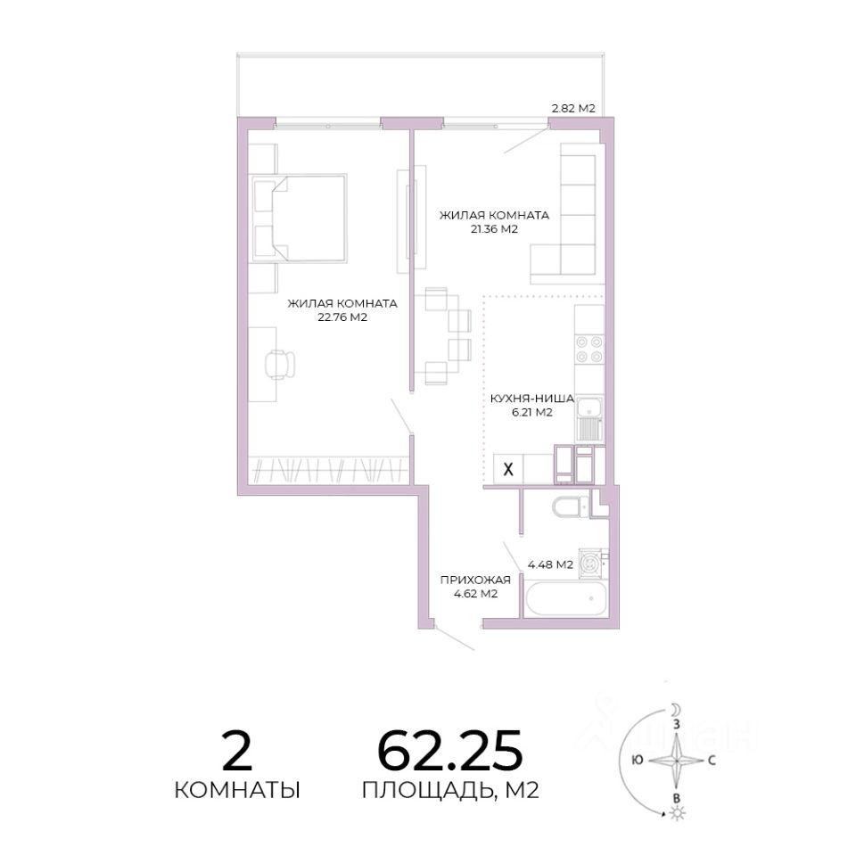 Продаётся 2-комнатная квартира в строящемся доме (дом 18), срок сдачи: IV-кв. 2025, общей площадью 62.25 кв.м., на 10 этаже. Дизайнерская отделка.