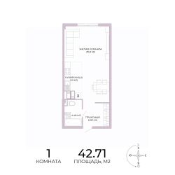 Продаётся 1-комнатная квартира в строящемся доме (дом 18), срок сдачи: IV-кв. 2025, общей площадью 42.71 кв.м., на 10 этаже. Дизайнерская отделка.