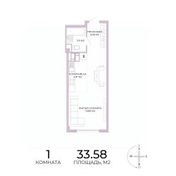 Продаётся 1-комнатная квартира в строящемся доме (дом 18), срок сдачи: IV-кв. 2025, общей площадью 33.58 кв.м., на 2 этаже. Дизайнерская отделка.
