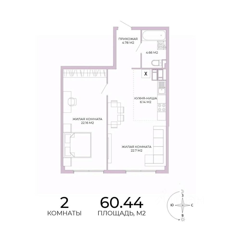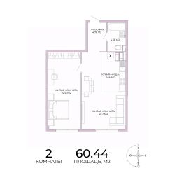 Продаётся 2-комнатная квартира в строящемся доме (дом 18), срок сдачи: IV-кв. 2025, общей площадью 60.44 кв.м., на 11 этаже. Дизайнерская отделка.