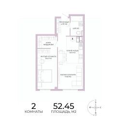 Продаётся 2-комнатная квартира в строящемся доме (дом 18), срок сдачи: IV-кв. 2025, общей площадью 52.45 кв.м., на 11 этаже. Дизайнерская отделка.
