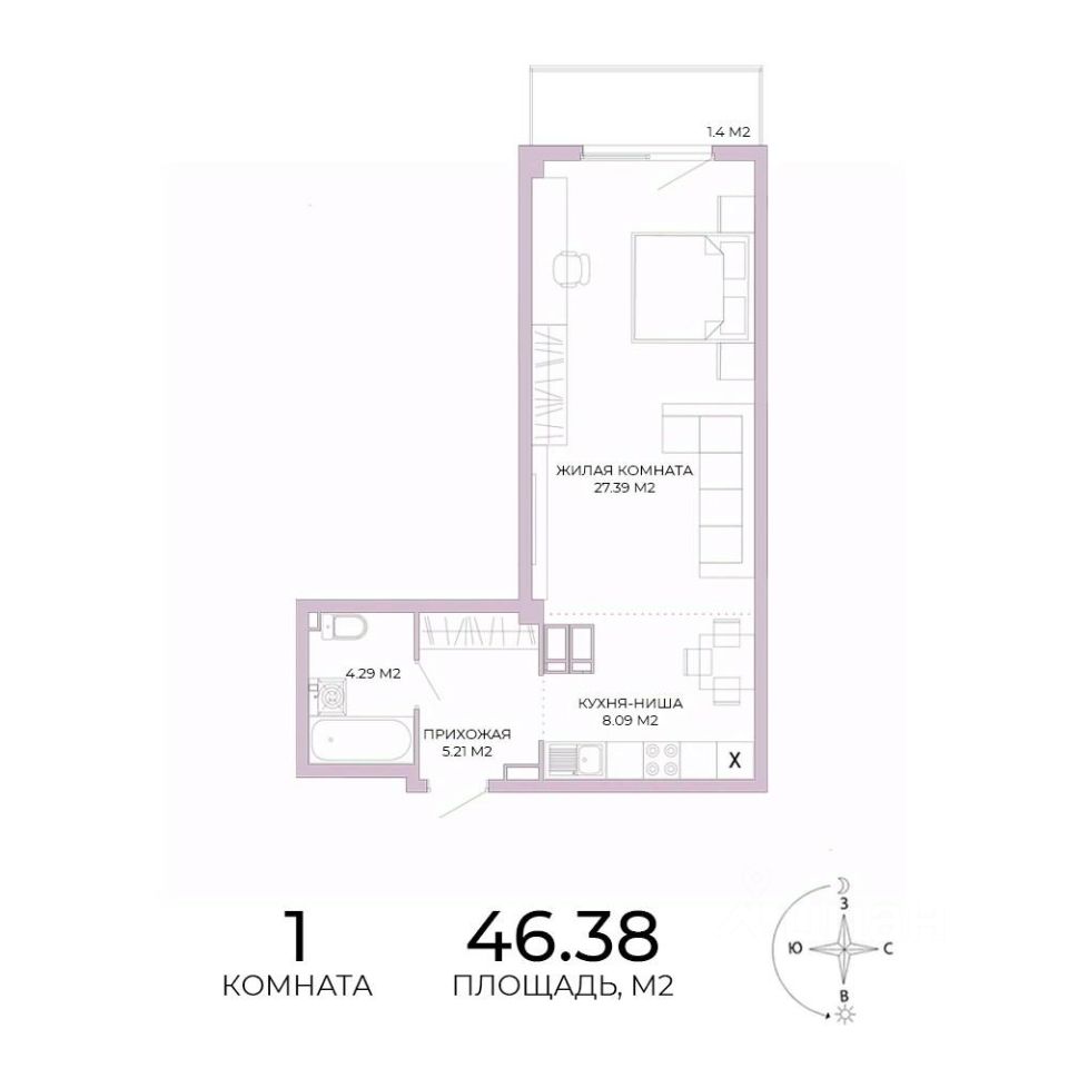 Продаётся 1-комнатная квартира в сданном доме (дом 18), срок сдачи: IV-кв. 2025, общей площадью 46.38 кв.м., на 12 этаже. Дизайнерская отделка.
