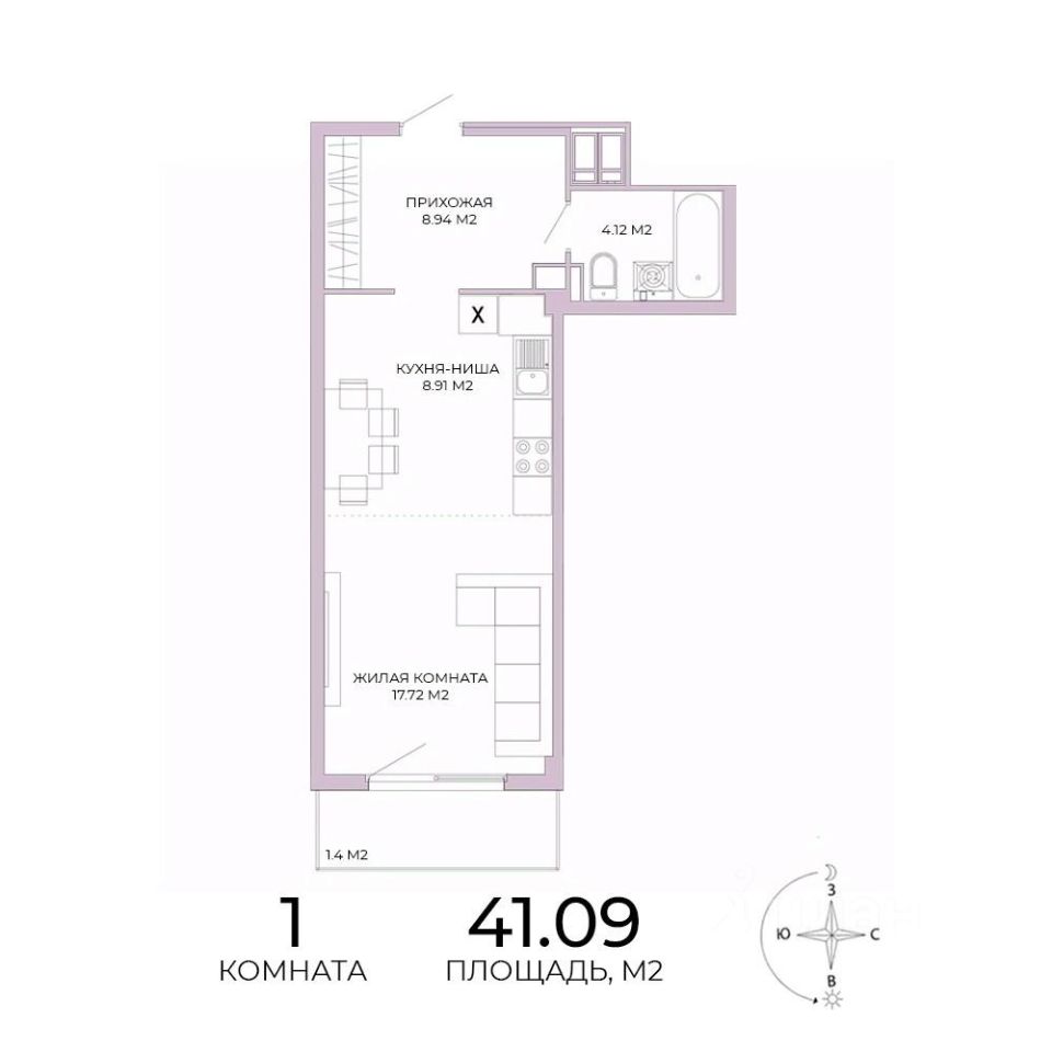 Продаётся 1-комнатная квартира в строящемся доме (дом 18), срок сдачи: IV-кв. 2025, общей площадью 41.09 кв.м., на 12 этаже. Дизайнерская отделка.