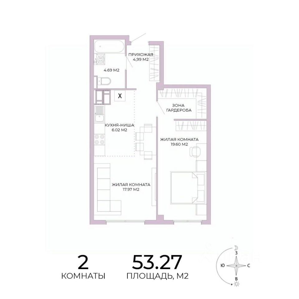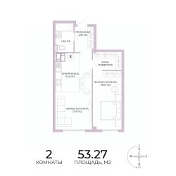 Продаётся 2-комнатная квартира в строящемся доме (дом 18), срок сдачи: IV-кв. 2025, общей площадью 53.27 кв.м., на 13 этаже. Дизайнерская отделка.
