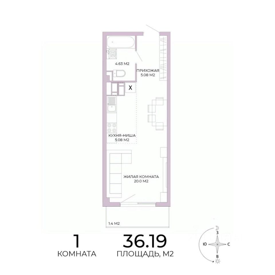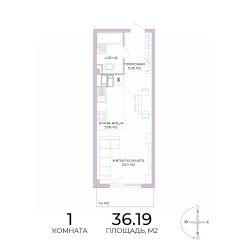 Продаётся 1-комнатная квартира в строящемся доме (дом 18), срок сдачи: IV-кв. 2025, общей площадью 36.19 кв.м., на 14 этаже. Дизайнерская отделка.