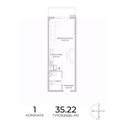 Продаётся 1-комнатная квартира в строящемся доме (дом 18), срок сдачи: IV-кв. 2025, общей площадью 35.22 кв.м., на 16 этаже. Дизайнерская отделка.