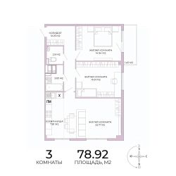 Продаётся 3-комнатная квартира в строящемся доме (дом 18), срок сдачи: IV-кв. 2025, общей площадью 78.92 кв.м., на 16 этаже. Дизайнерская отделка.