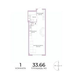 Продаётся 1-комнатная квартира в строящемся доме (дом 18), срок сдачи: IV-кв. 2025, общей площадью 33.66 кв.м., на 16 этаже. Дизайнерская отделка.