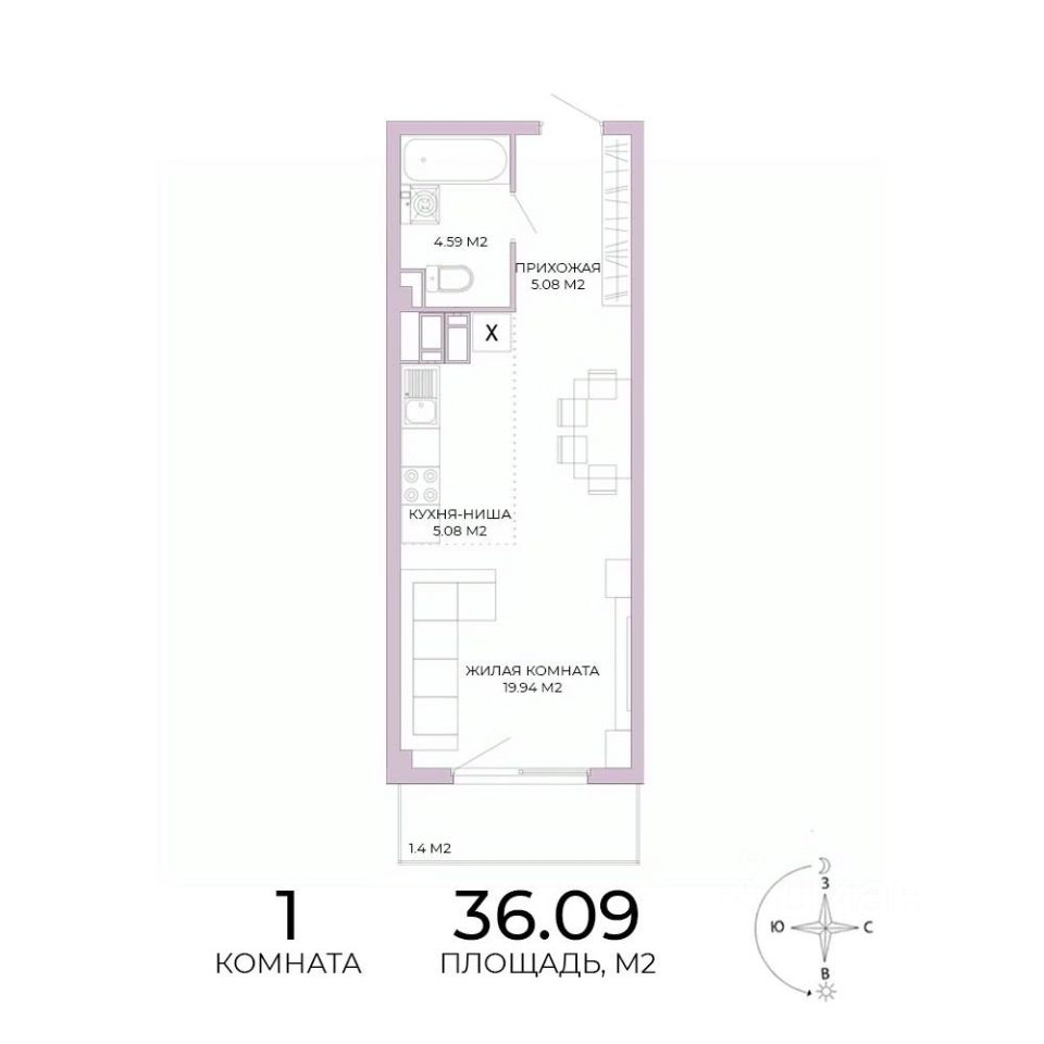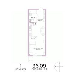 Продаётся 1-комнатная квартира в строящемся доме (дом 18), срок сдачи: IV-кв. 2025, общей площадью 36.09 кв.м., на 3 этаже. Дизайнерская отделка.