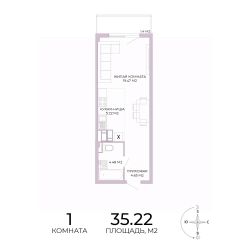 Продаётся 1-комнатная квартира в строящемся доме (дом 18), срок сдачи: IV-кв. 2025, общей площадью 35.22 кв.м., на 17 этаже. Дизайнерская отделка.