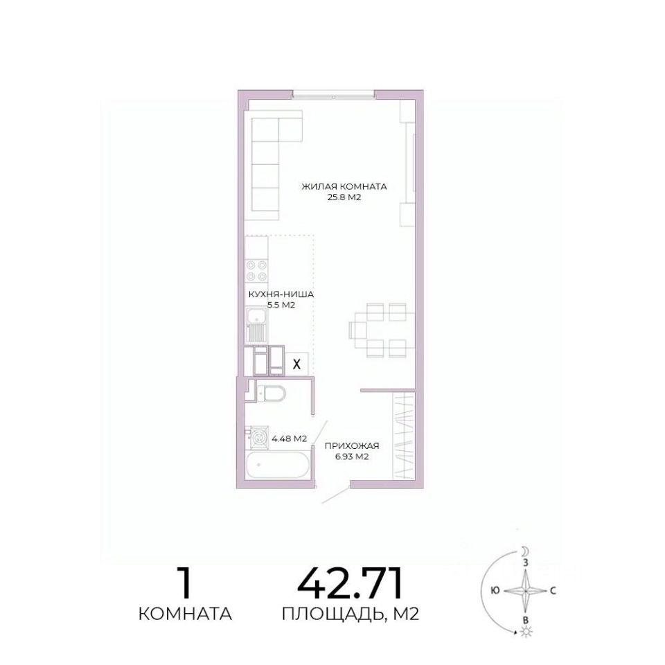 Продаётся 1-комнатная квартира в строящемся доме (дом 18), срок сдачи: IV-кв. 2025, общей площадью 42.71 кв.м., на 17 этаже. Дизайнерская отделка.