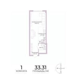 Продаётся 1-комнатная квартира в строящемся доме (дом 18), срок сдачи: IV-кв. 2025, общей площадью 33.31 кв.м., на 17 этаже. Дизайнерская отделка.