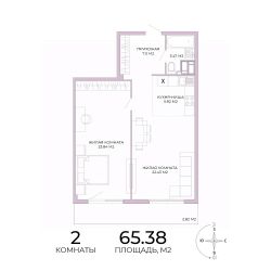 Продаётся 2-комнатная квартира в строящемся доме (дом 18), срок сдачи: IV-кв. 2025, общей площадью 65.38 кв.м., на 17 этаже. Дизайнерская отделка.