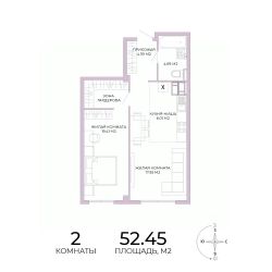 Продаётся 2-комнатная квартира в строящемся доме (дом 18), срок сдачи: IV-кв. 2025, общей площадью 52.45 кв.м., на 17 этаже. Дизайнерская отделка.