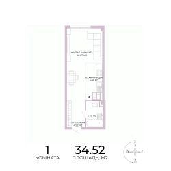 Продаётся 1-комнатная квартира в строящемся доме (дом 18), срок сдачи: IV-кв. 2025, общей площадью 34.52 кв.м., на 17 этаже. Дизайнерская отделка.