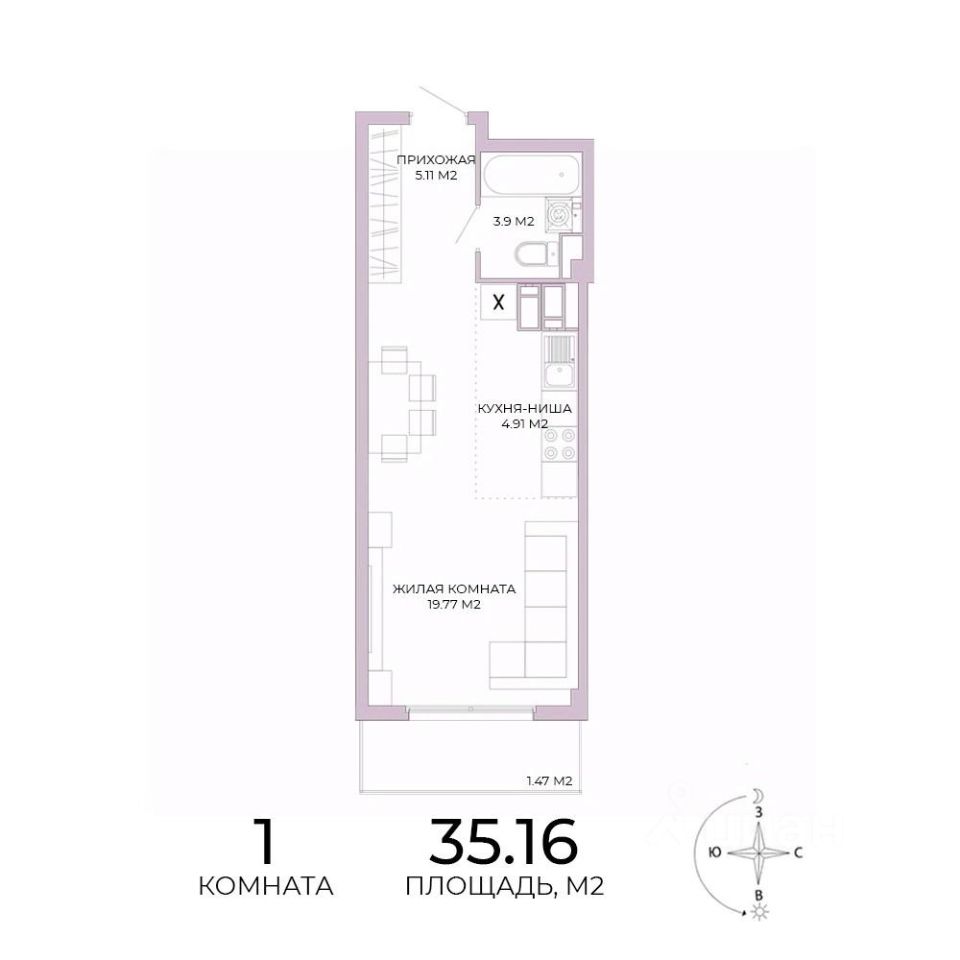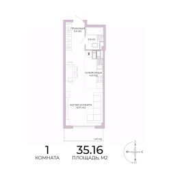 Продаётся 1-комнатная квартира в строящемся доме (дом 18), срок сдачи: IV-кв. 2025, общей площадью 35.16 кв.м., на 4 этаже. Дизайнерская отделка.