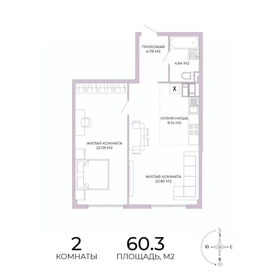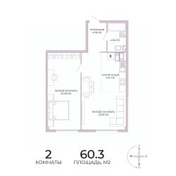 Продаётся 2-комнатная квартира в строящемся доме (дом 18), срок сдачи: IV-кв. 2025, общей площадью 60.3 кв.м., на 4 этаже. Дизайнерская отделка.
