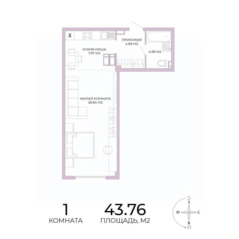 Продаётся 1-комнатная квартира в строящемся доме (дом 18), срок сдачи: IV-кв. 2025, общей площадью 43.76 кв.м., на 4 этаже. Дизайнерская отделка.