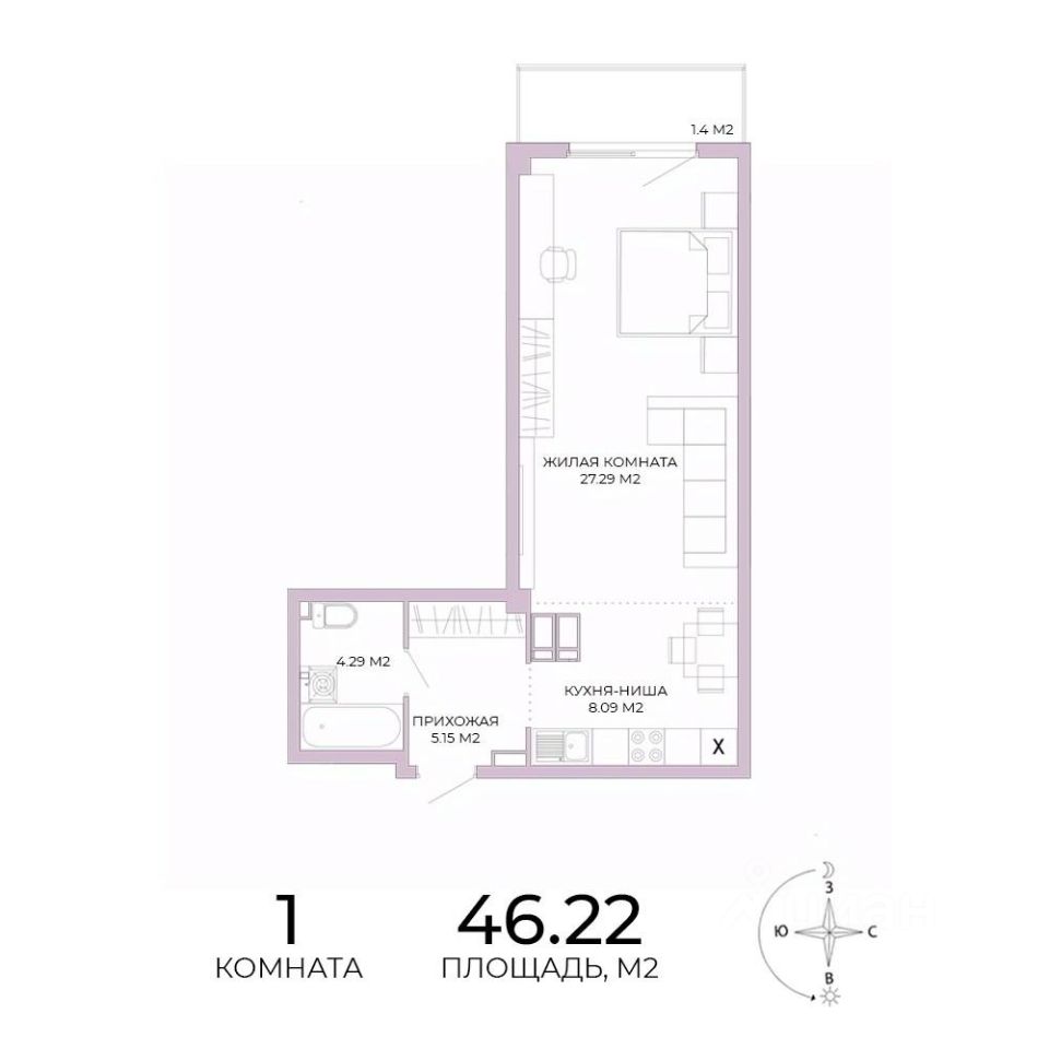 Продаётся 1-комнатная квартира в строящемся доме (дом 18), срок сдачи: IV-кв. 2025, общей площадью 46.22 кв.м., на 5 этаже. Дизайнерская отделка.