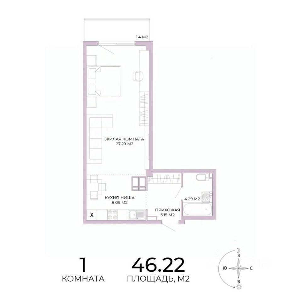 Продаётся 1-комнатная квартира в строящемся доме (дом 18), срок сдачи: IV-кв. 2025, общей площадью 46.22 кв.м., на 5 этаже. Дизайнерская отделка.