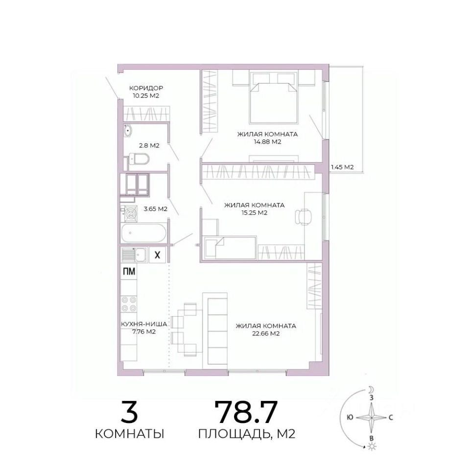 Продаётся 3-комнатная квартира в строящемся доме (дом 18), срок сдачи: IV-кв. 2025, общей площадью 78.7 кв.м., на 5 этаже. Дизайнерская отделка.