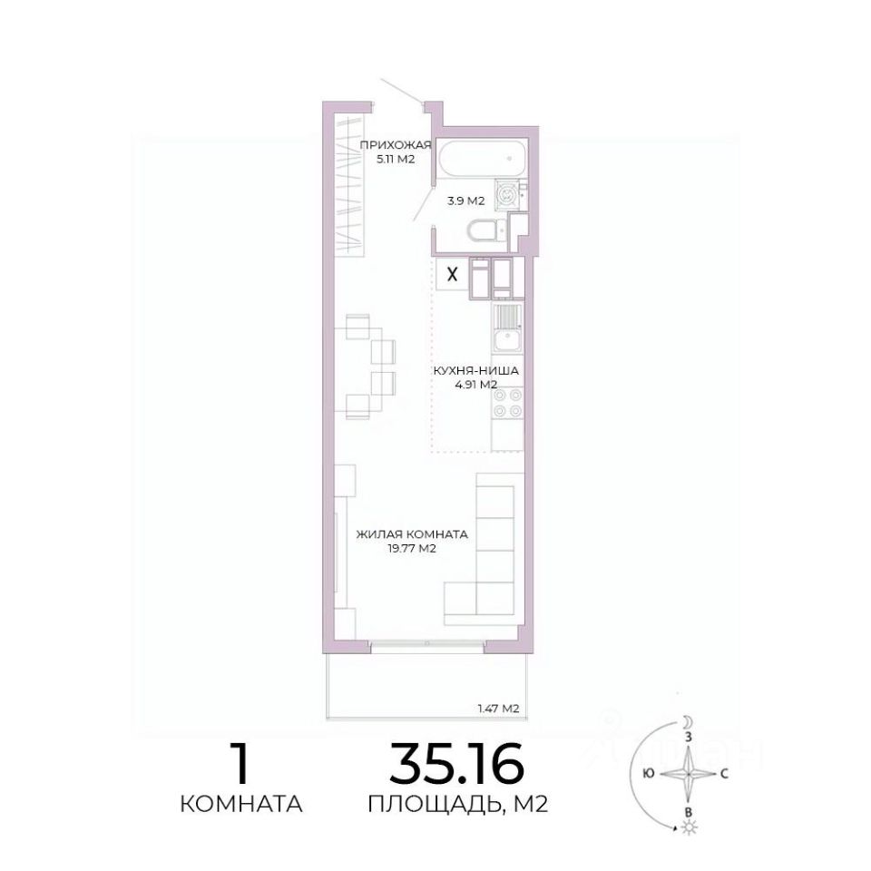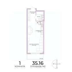 Продаётся 1-комнатная квартира в строящемся доме (дом 18), срок сдачи: IV-кв. 2025, общей площадью 35.16 кв.м., на 5 этаже. Дизайнерская отделка.